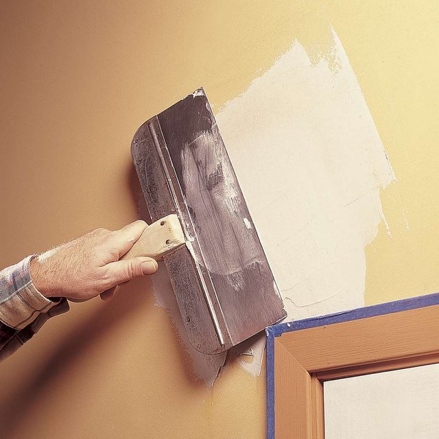 As homes settle, cracks may radiate from the corners of doors and windows. Whether your walls are made of plaster or drywall, you can repair the cracks in two steps over a day or two—and get the area ready to sand and paint. Use paper tape; it’s stronger than fiberglass tape for wall repairs. For cracks more than 1/4 in. deep, clean out the loose material and use a quick-setting crack filler like Durabond to build up the area level with the wall. Then use the steps shown in Photos 2 and 3 to fix it.