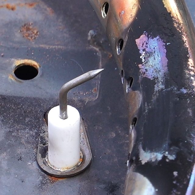- Clean the ignitor terminal with steel wool or a soft bristle wire brush, being careful not to bend it.