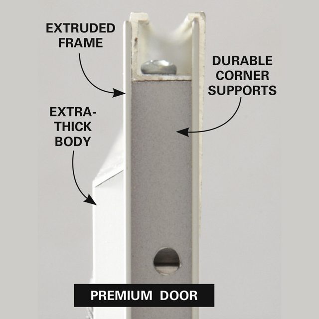 Most sliding doors come with really crummy sliding screen doors. They’re constantly out of adjustment and the wheels always break. If you’re tired of trying to tweak it, or somebody has walked into it and bent it, now’s the time to upgrade to a premium door. Premium screen doors are made from extruded aluminum, so they don’t flex like the cheapo rolled aluminum styles, and they have thicker metal and extremely rigid corners. High quality wheels make the door slide easier. They only cost about $120 ($20 more than an original replacement version).