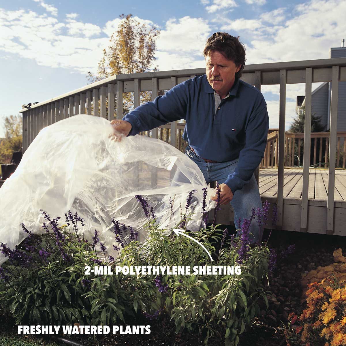 You’ll also want to protect any plants surrounding your deck (photo 2). Be sure to remove the plastic soon after cleaning and rinsing so it won’t stress the plants.