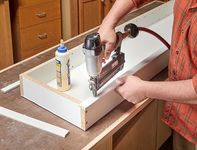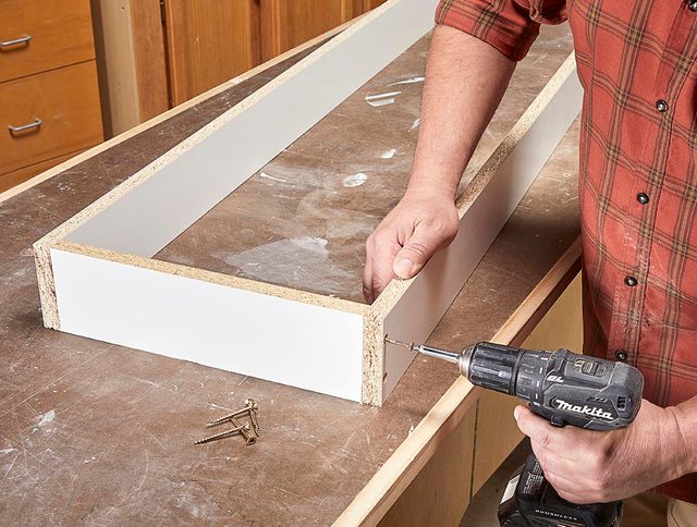 • Note: Placement of the slides isn’t critical; just center them side to side and be sure they’re above and below the cabinet’s trim.