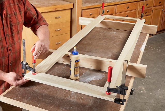 • Glue the half-lap joints, then clamp them until the glue dries.