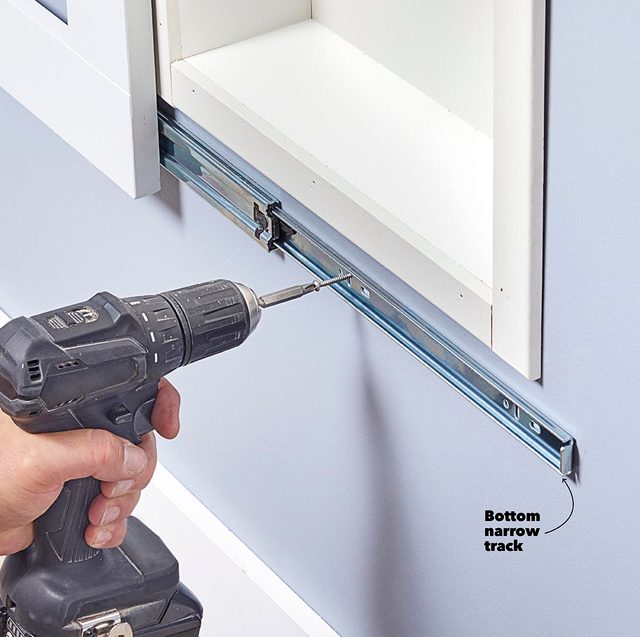 • Pro Tip: Because standard drawer slides are 1/2-in. thick and the wall may not be dead flat, thicker trim could keep the mirror from sliding.