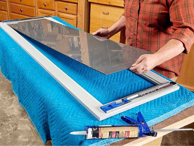 • Apply a bead of silicone in the rabbet, and then carefully place the mirror in the silicone.