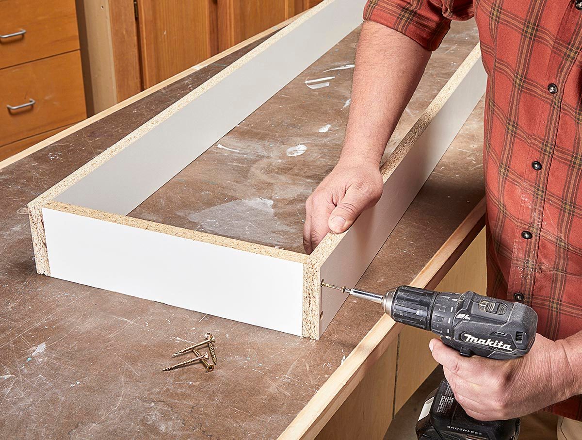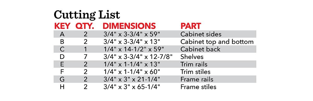I chose 1×4 poplar boards. Poplar is easy to find, inexpensive and lightweight. It also has good screw-holding capability and takes paint well. For the cabinet, I used precut melamine shelving from the home center. Its front edge is already banded, so if you plan your cuts, you won’t need to edge-band your shelves.