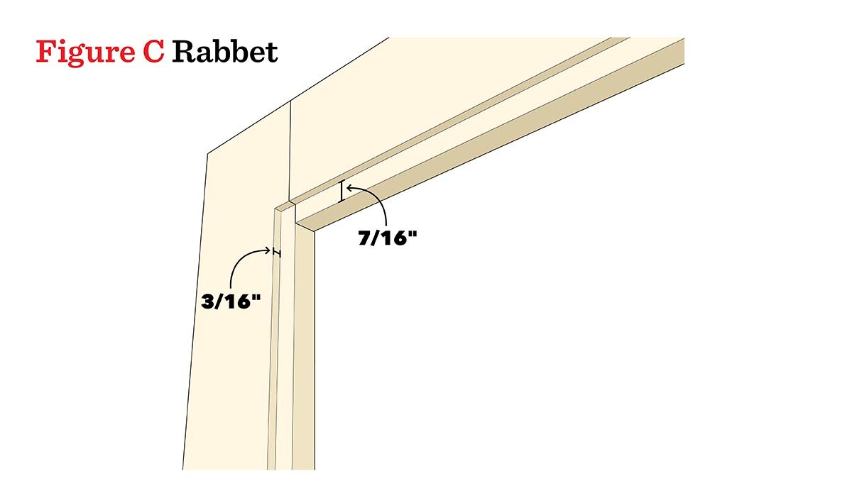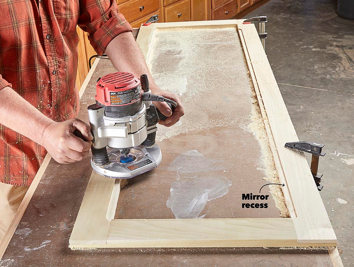 • Rout a 7/16-in.-wide recess the depth of your mirror’s thickness, using a rabbeting bit in your router.