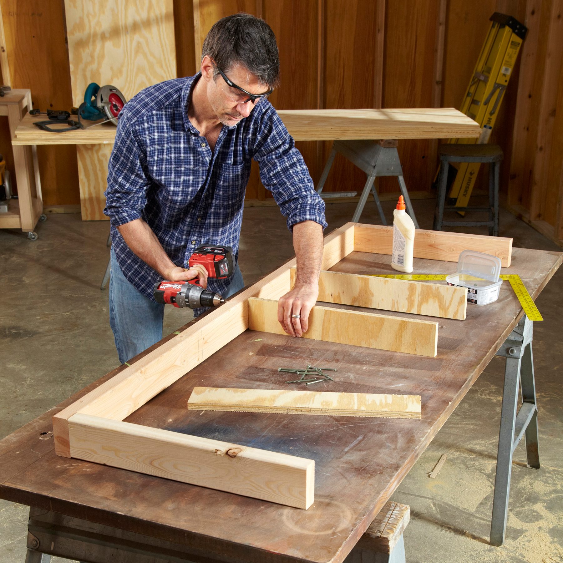 Does your current workbench consist of two sawhorses and an old door slab? It’s time for an upgrade! There are hundreds of workbench plans out there, but not many of them call for plywood. Plywood makes a flat, stable work surface, and it doesn’t need to be clamped, glued or planed. And it can easily be replaced if it gets too beaten up after years of abuse.