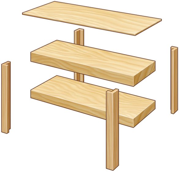 For the names of the parts and their dimensions, see the Cutting List.