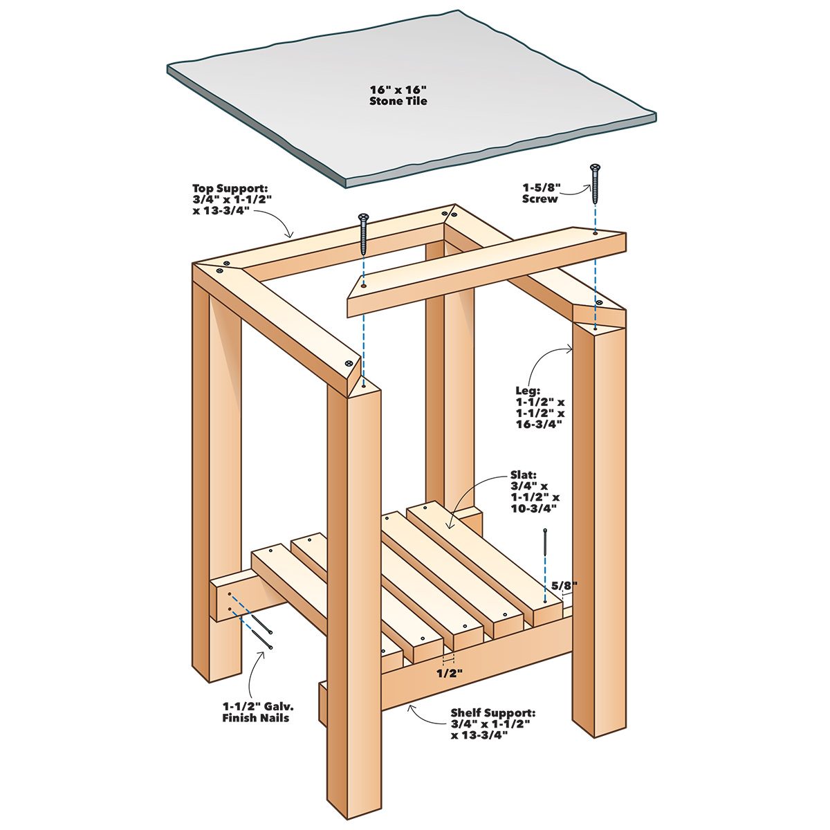 Tile stores carry a wide selection of beautiful stone tile. And that’s the inspiration for this stone top patio table. We chose a slate tile, but choose from different types of tile, including granite, limestone and marble tiles. You could also use manufactured tile, though the edges may not match the face of the tile.